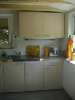 In der Küche befindet sich ein 2-Platten-Elektroherd, ein Kühlschrank mit Gefrierfach, ein kleiner Heißluftback-ofen, eine Mikrowelle, ein Raclette mit zusätzlichem heißen Stein für 6 Personen, eine Friteuse (bitte nur für die Zubereitung von Pommes benutzen), einen Wasser-kocher und eine Kaffeemaschine. Töpfe, Pfannen, Schüsseln, Geschirr und Gläser etc. sind mehr als ausreichend vorhanden. Der Küchenschrank ist normalerweise ausgestattet mit Gewürzen, Zucker, Salz, Essig, Öl, Filtertüten, Rest-Kaffeepulver in der Vorratsdose und Geschirrspülmittel.