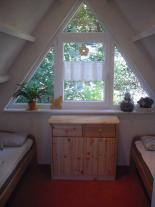 Das 3. Schlafzimmer (Waldseite) verfügt über 2 Einzelbetten (90x200), einem Sideboard, Regalen, Kleiderhaken, sowie div. Kinder- und Jugendbüchern und Spiele.
